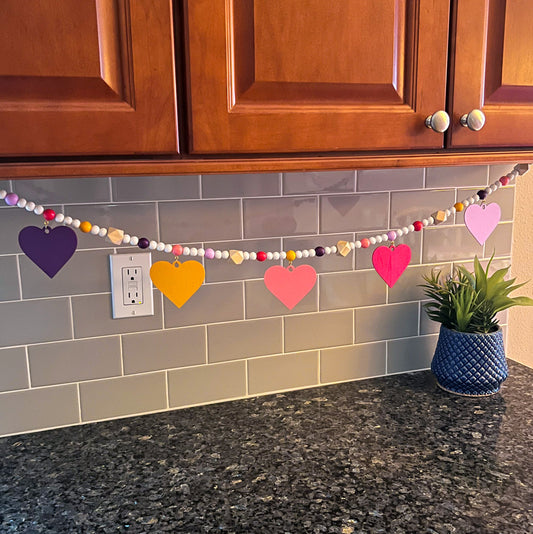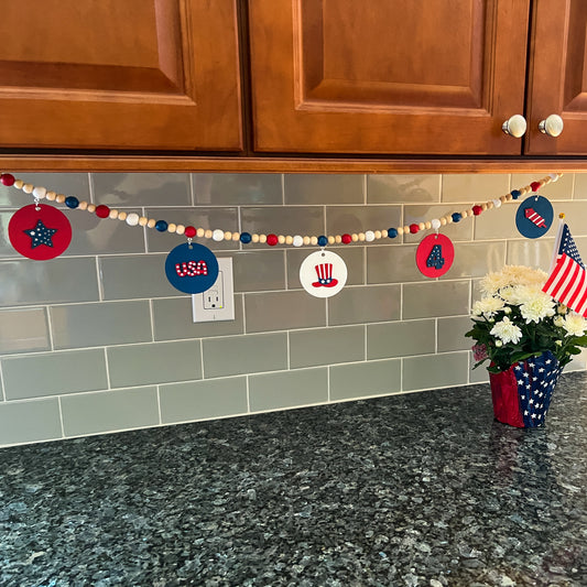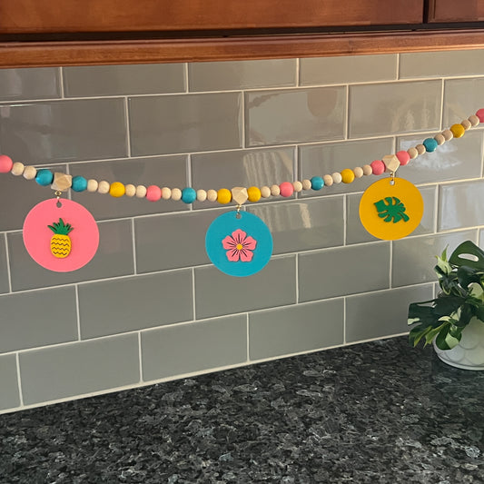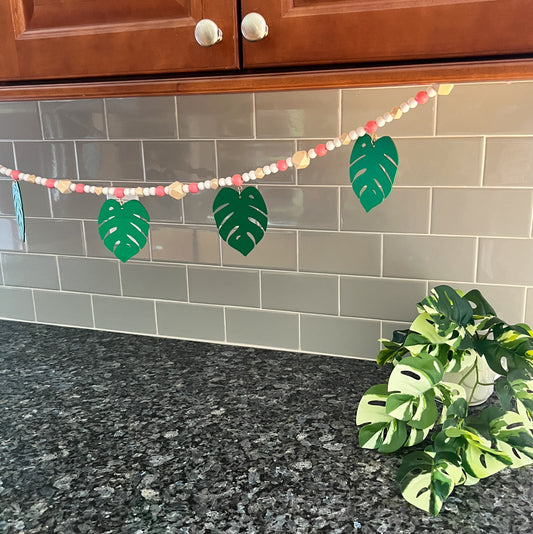 Garlands are created with a small gap between the end bead and the next so it can be coiled for storage. Beads can be moved along the string to fill in gaps as needed.